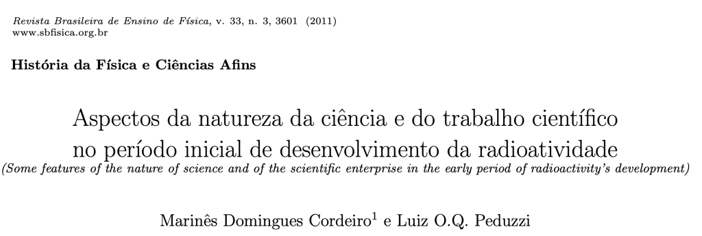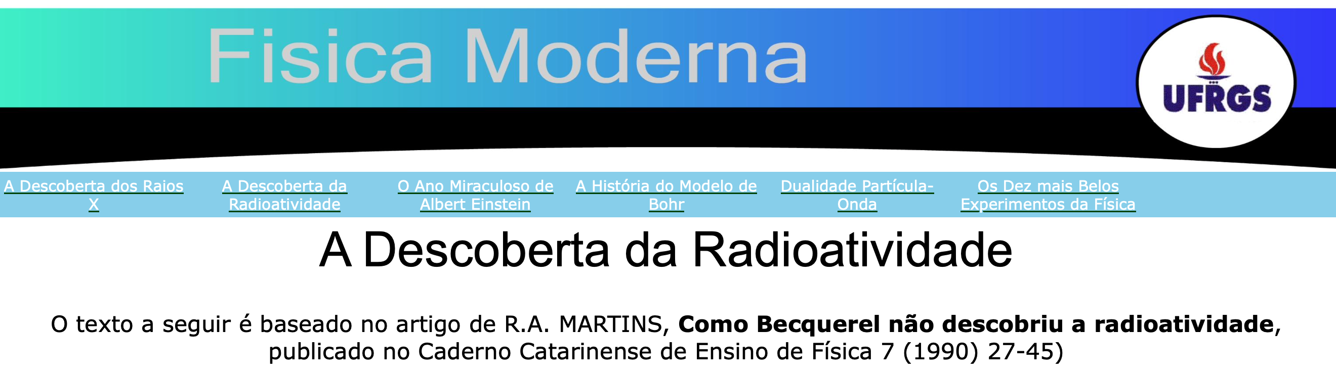 No endereço do IF-UFRGS: Marie Curie é quem dá a esse fenômeno o nome “radioatividade”.