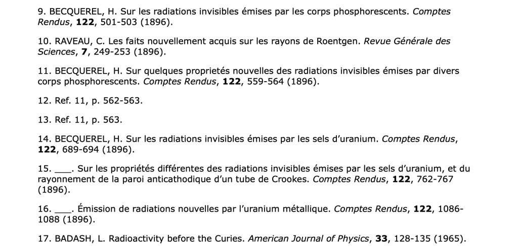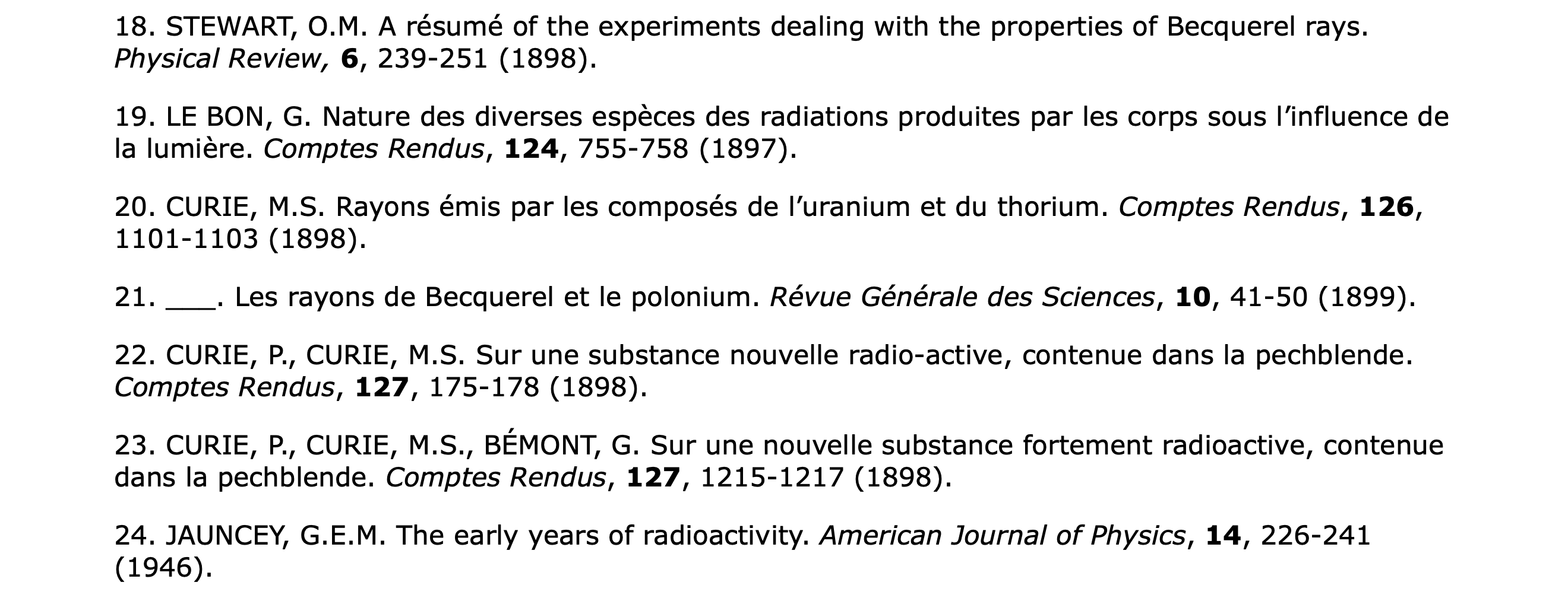 Embora tenha prometido (Com base exclusivamente no conteúdo da página do Instituto de Física da UFRGS“A Descoberta da Radioatividade” (módulo 06, seção 02), aqui está uma bibliografia detalhada, organizada segundo os principais protagonistas do tema), o algoritmo não respeitou a restrição imposta na demanda. Como veremos mais adiante, o algoritmo visitou outros endereços.