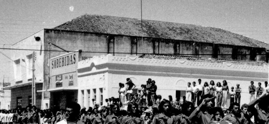único cinema em Areia Branca. O Cine Cel. Fausto, como cinema, é uma imagem difusa na minha mente. Não lembro de ter aí assistido filme. Lembro do prédio ainda inteiro, e com o passar dos anos acompanhei seu progressivo desmoronamento. No canto direito da foto à esquerda, um dos últimos registros do Cel. Fausto.